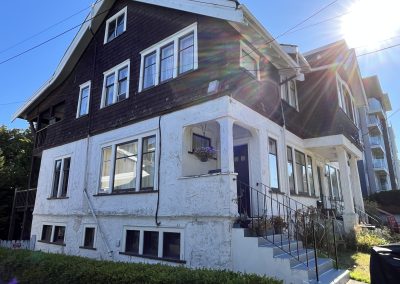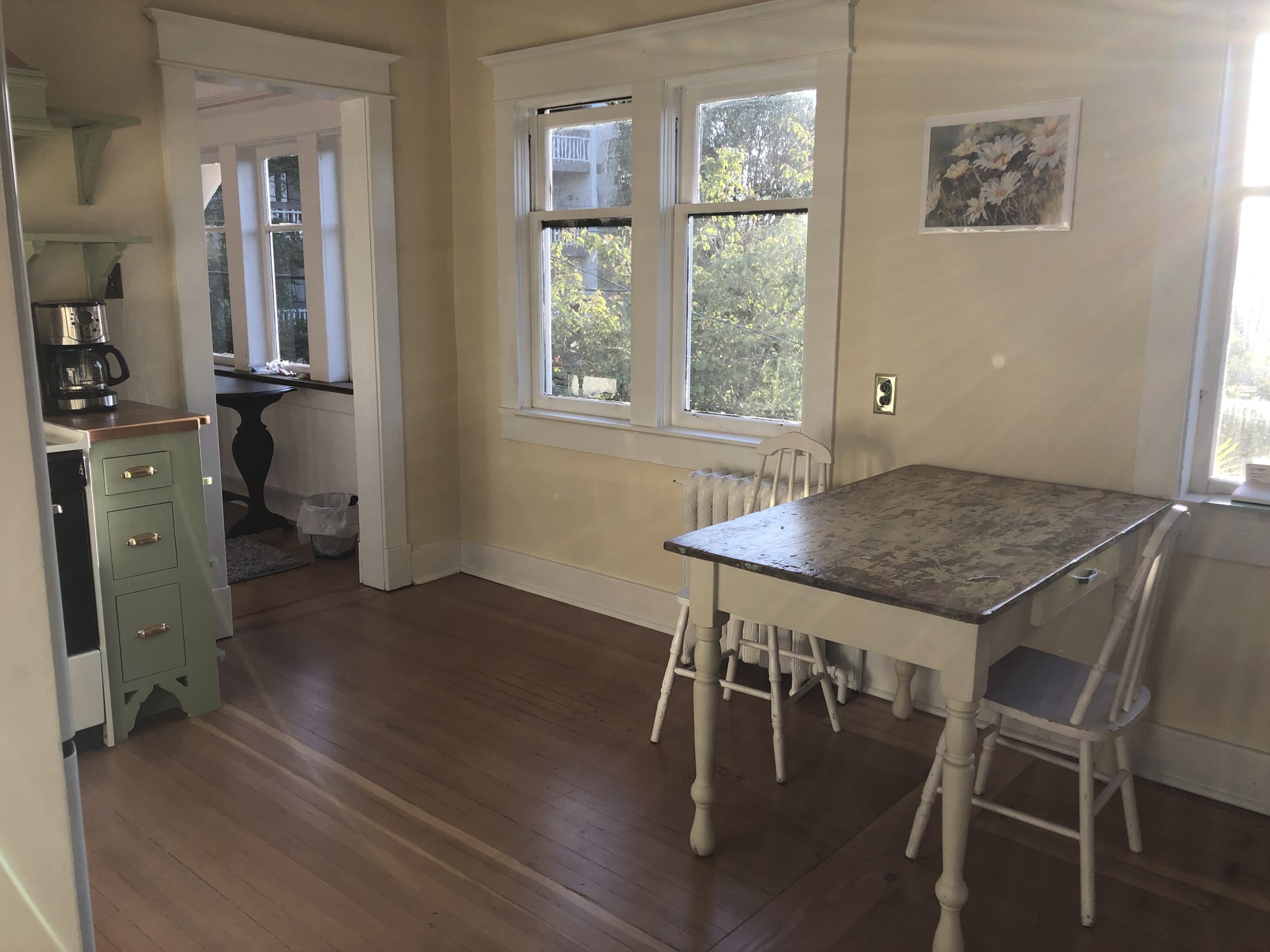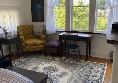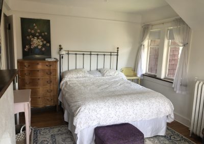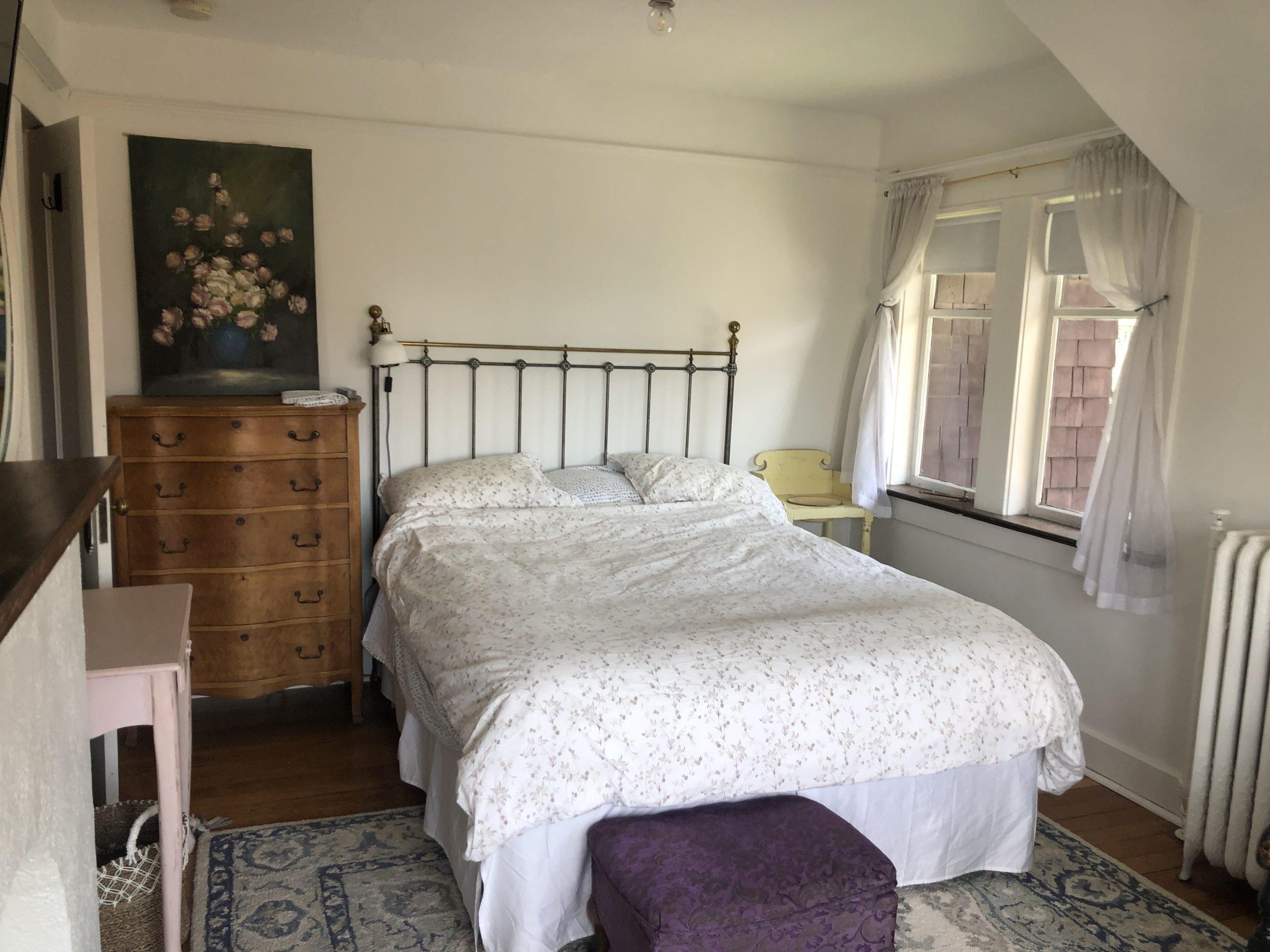 The self-contained suite is bright and sunny—a charming corner of the house—located upstairs through the original main entrance from the veranda, exterior stairs, and backyard.