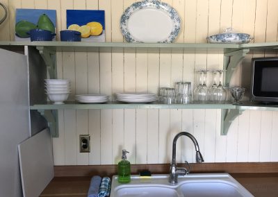The Dollhouse entrance opens into the original kitchen area, complete with all the amenities you’ll need to enjoy your stay. The main sleeping room and kitchen offer west-facing views over the purple Sooke Hills and glowing sunsets.
